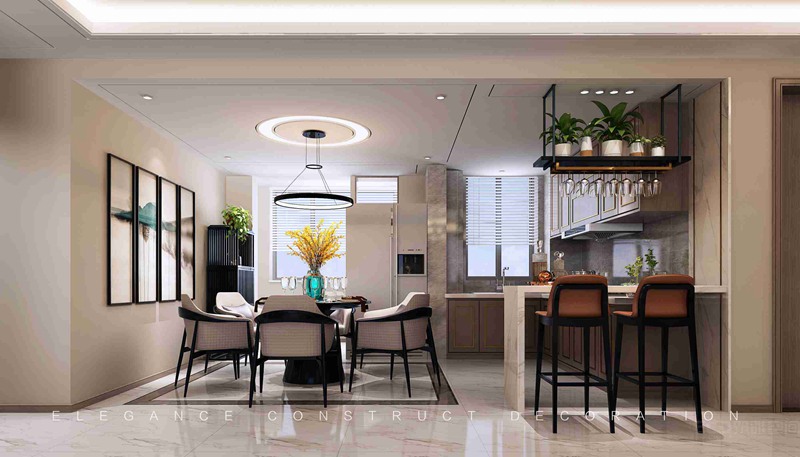 本案設計師采用沉穩(wěn)大氣的新中式,將現(xiàn)代時尚元素與中式古典韻味完美融合,打造充滿設計美感的空間。