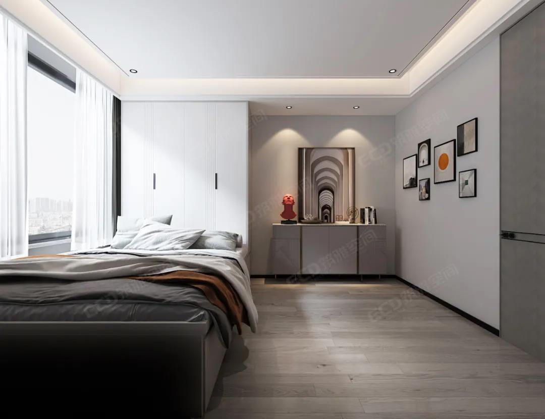 輕推而入,豁然開朗的空間將一室精致呈于眼前。臥室采用溫和而內(nèi)斂的氣質(zhì)